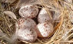 | English; | Woodlark | Woodlarks are scarce migrants in Scotland, and are mainly found breeding in eastern and southern England - the New Forest, Surrey/Berkshire heaths, Breckland and some Suffolk heaths are the best areas to find them. The ones which remain in winter are usually found in Hampshire, west Surrey and Devon and in recent years some wintering flocks have been found in East Anglia. The diet is mainly composed of seeds and such insects as beetles, flies and moths. Nest is built on the ground, under a low bush or scrub, consists of grass and moss lined with finer grass and hair. beginning in April, 3-5 eggs are laid in 2-3 clutches Bird Study |