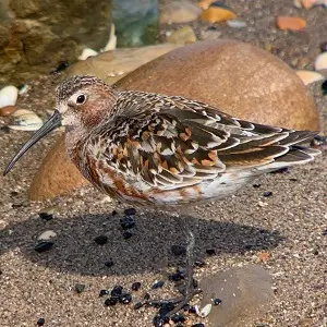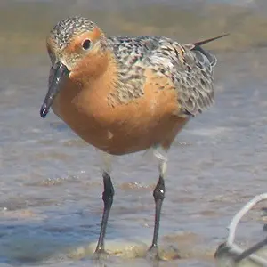 | English; | Bar-tailed Godwit | Scottish bar-tailed godwits prefer sandy or muddy shores or estuaries, but are also found on rocky shores. They breed mainly in the sub-Arctic on tundra, peat mosses and swamps near the coast. Black-tailed Godwits have two subspecies which visit Britain. In winter, it is mostly the Icelandic Godwits that stay in our estuaries, around 44,000 birds! These then return to Iceland come spring, to breed in their wetlands, agricultural fields and heathlands. However, some European individuals breed in Britain every year, before overwintering in Southern Europe or Africa. | ![]() |