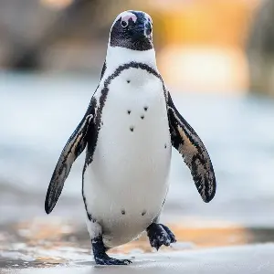 | English; | African Penguin | Known as the Jackass Penguin due to its donkey-like braying call, is the only penguin species found on the African continent. They are highly social, flightless seabirds primarily found along the southwestern coast of Africa, from Namibia to South Africa. Their diet consists mainly of pelagic schooling fish such as anchovies, sardines, and pilchards, as well as squid and small crustaceans. | ![]() |